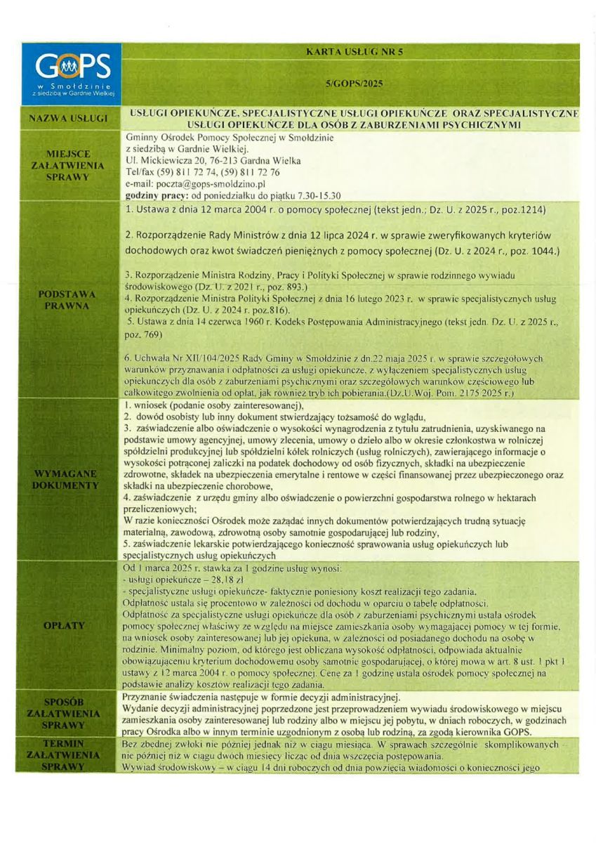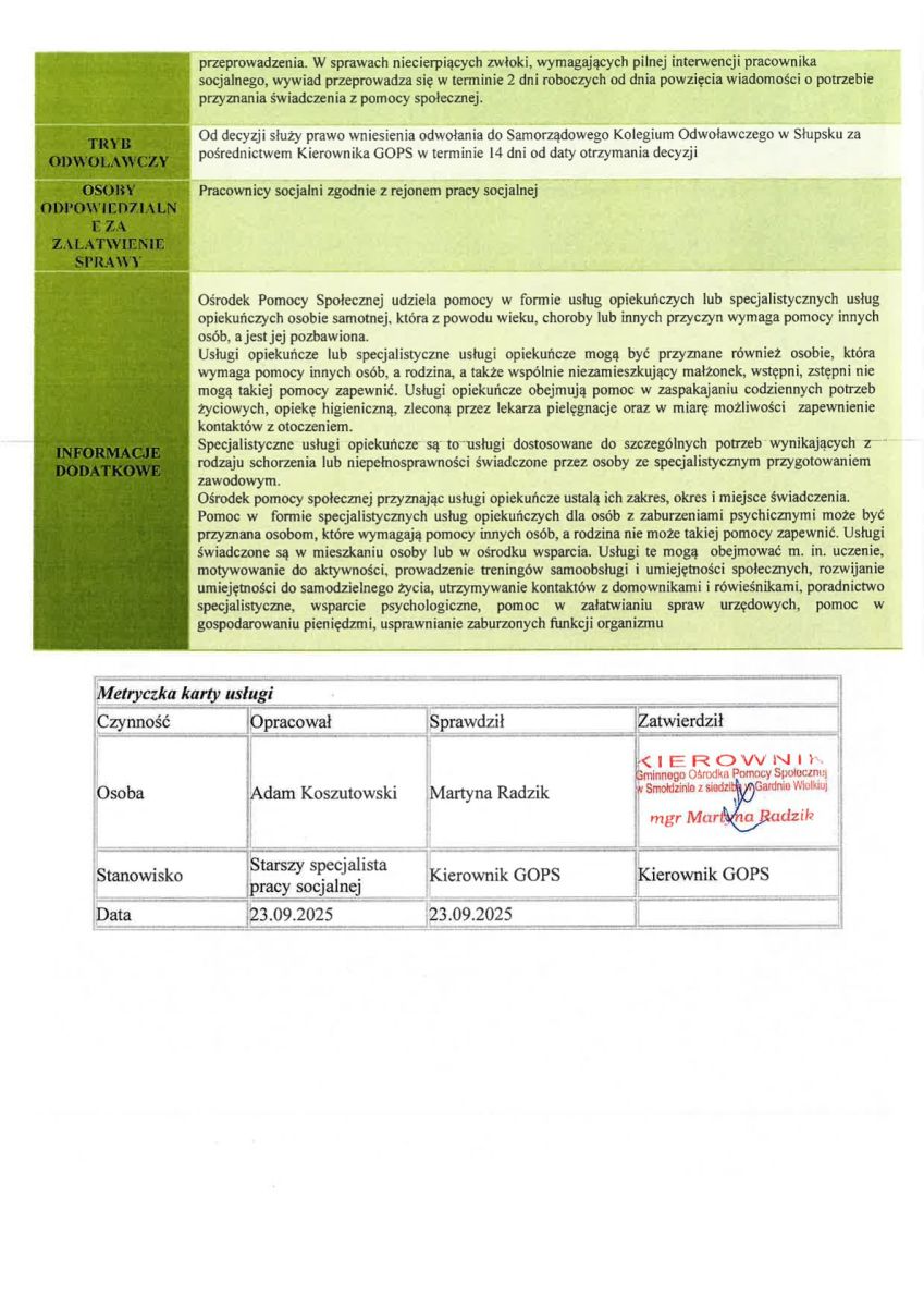 Karta usług usługi opiekuńcze oraz specjalistyczne
